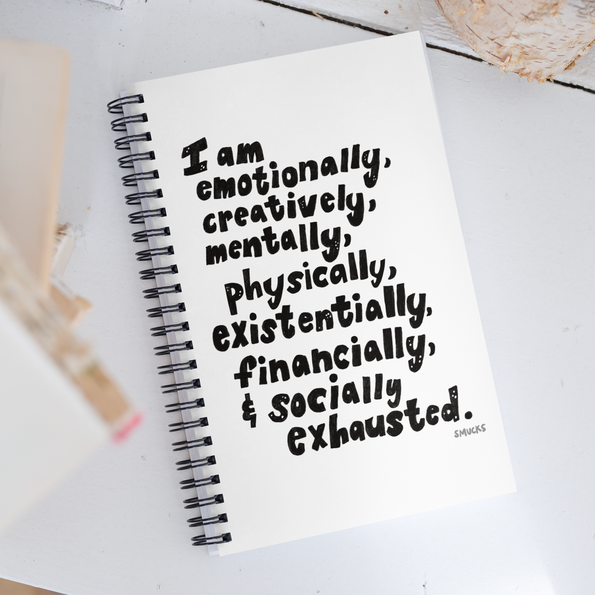 Keywords: illustrated spiral notebook, hand illustrated notebook, daily journal, sketchbook journal, unique notebook gift, illustrated notebook journal, graphic illustration notebook, note taking journal, spiral bound illustrated notebook, gift for writers, gift for artists, thoughtful gift, stationery gift, bold graphic journal, woman owned business stationery, indie artist notebook, relatable art, hand lettered journal