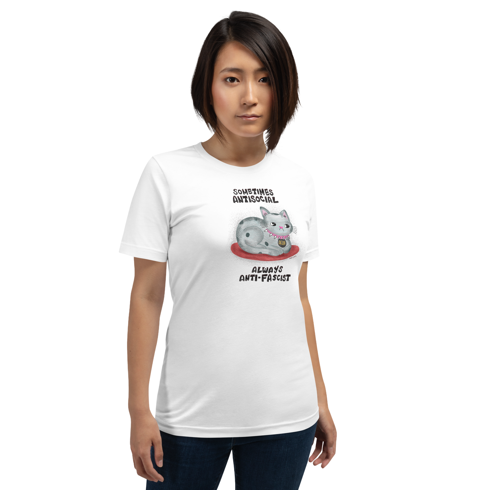 Keywords: unisex graphic tee, illustrated unisex t shirt, graphic t shirt with artwork, artist designed t shirt, hand illustrated t shirt, illustrated graphic tee, art print t shirt, wearable art t shirt, relaxed fit graphic tee, everyday graphic t shirt, graphic tee gift, unisex t shirt gift, artist made apparel, los angeles designed t shirt, creative clothing gift, indie artist clothing, art t shirt, protest t shirt, illustrated cat tee, funny cat t shirt, radical tee